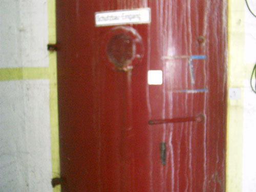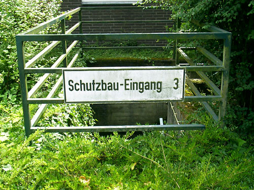 Auch der obige ist einer von mehreren neuen Eingängen in den ehemaligen, damals modernen "Atomschutzbunker" des (damaligen) Bundeswehrkrankenhauses in Osnabrück. Dieses Schutzgebäude wird heute von der Stadt und dem Klinikum Osnabrück als Archiv und Lagerräumlichkeit für soziale Organisationen genutzt. Die Bunkeranlage umfasst einen 1-geschossig errichteten Anlagenbereich, welcher sich unter dem gesamten darüber liegenden Gebäude ausdehnt. Die Anlage ist in Teilen noch funktionsfähig.