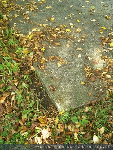 Unter dieser Betonplatte befand sich ursprünglich die Rampe eines zweiten Einganges: