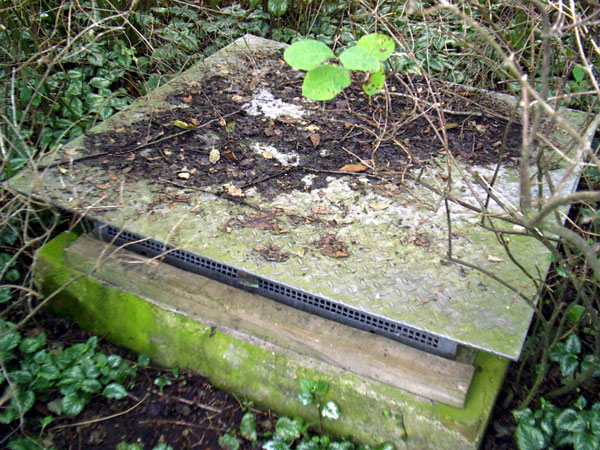"Dieser Deckungsgraben befindet sich an der Schulstraße in Lechtingen. Die Anlage wurde damals von der anliegenden Schule in Auftrag gegeben, um den Lehrern und Schülern zumindest einen gewissen Luftschutz bieten zu können. Offenbar führt der von uns entdeckte Bau geradewegs unter der Straßenkreuzung hindurch Richtung Keller der ehemaligen Grundschule. Unter dem ersichtlichen Zugang verbirgt sich heute offenbar ein kleiner Heizungsraum, der ein Teil des Grabens zu sein scheint."