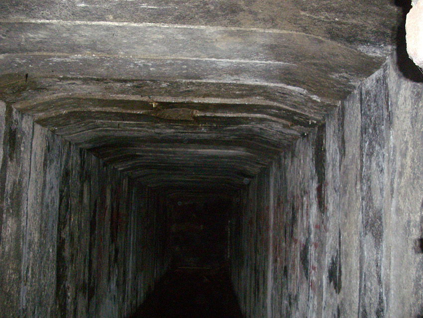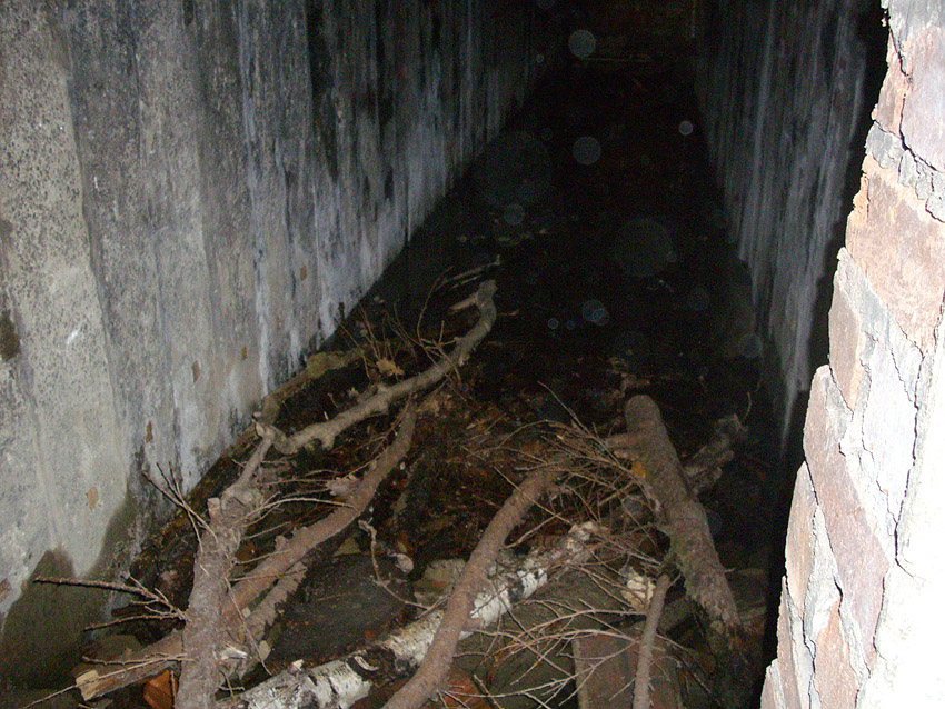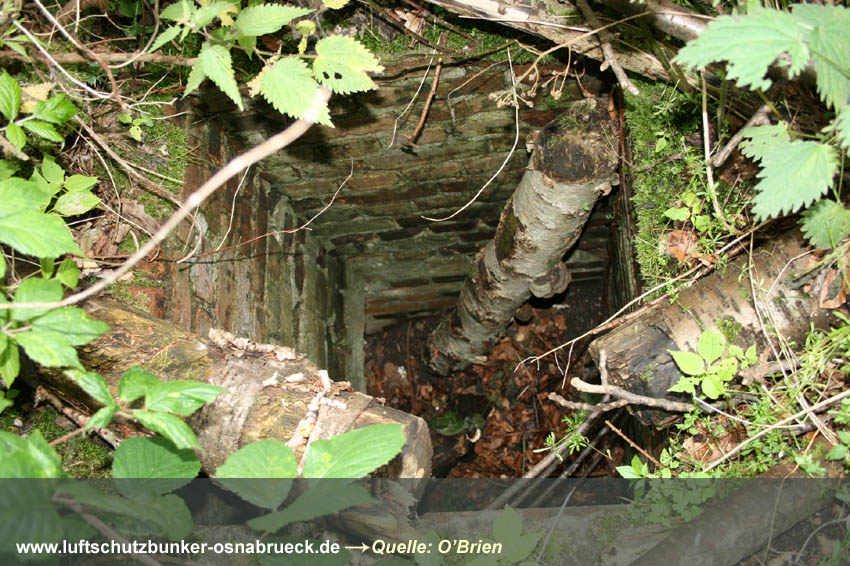 Dieser aus Fertigbauteilen hergestellte Deckungsgraben hat eine Länge von ungefähr 10 Metern. Er besitzt einen Haupteingang und einen Notausstieg.