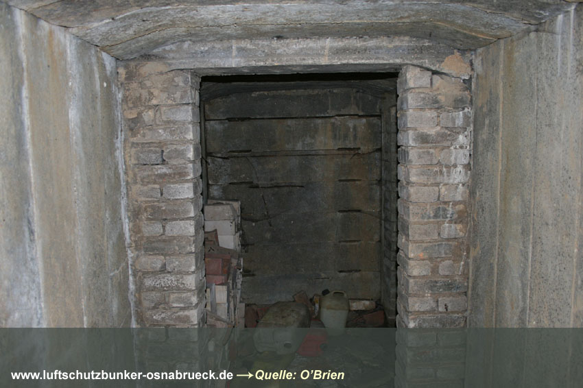 Dieser betonierte Deckungsgraben befindet sich auf einem Privatgrundstück. Er wurde großteilig aus Fertigbetonteilen hergestellt. Obwohl der Eingangsbau denen der Reichsbahngräben ähnelt, ist dies jedoch ein Privatschutzbau in Eigenfertigung. Der Zugang: Es geht die Treppe herunter, dann 2 Meter nach rechts und dann wieder links in den circa 8 Meter langen Deckungsraum hinein.
