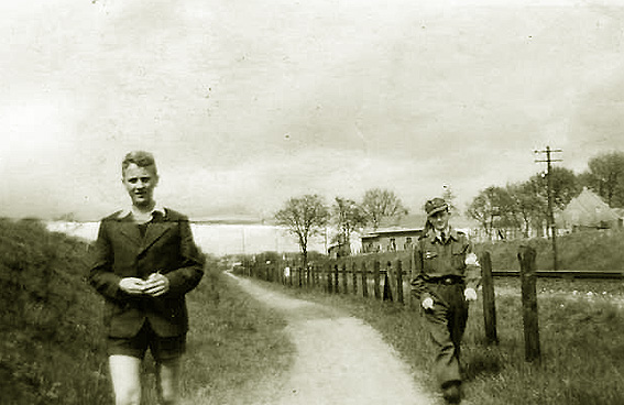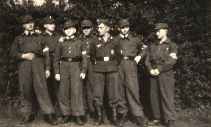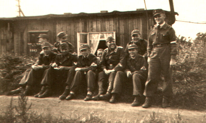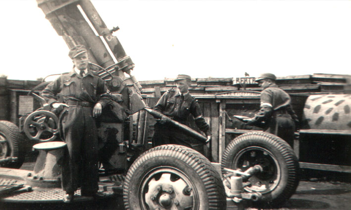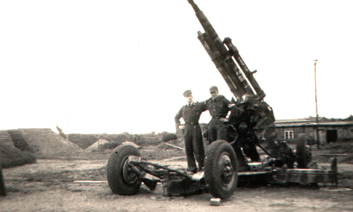 Im Hintergrund rechts Luftwaffenhelfer Harry Rohlfs, von welchem wir interessante alte Bilder der Flakstellung Kalkhügel erhielten. Das Foto entstand im Bereich Bassum.