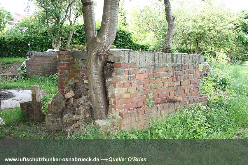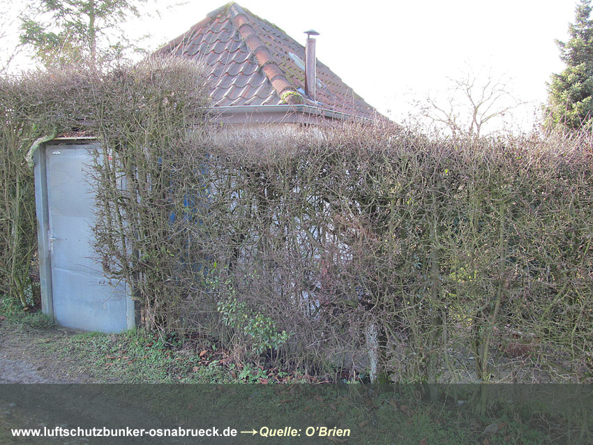 Fußweg zwischen Feldstraße und Karstweg / Garten neben Flakgebäude / Mauer...