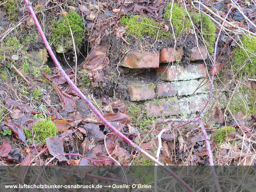 Zu sehen ist ein Teil des halbrund gemauerten Sturzes des ehemaligen Einganges...