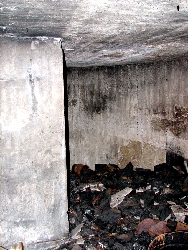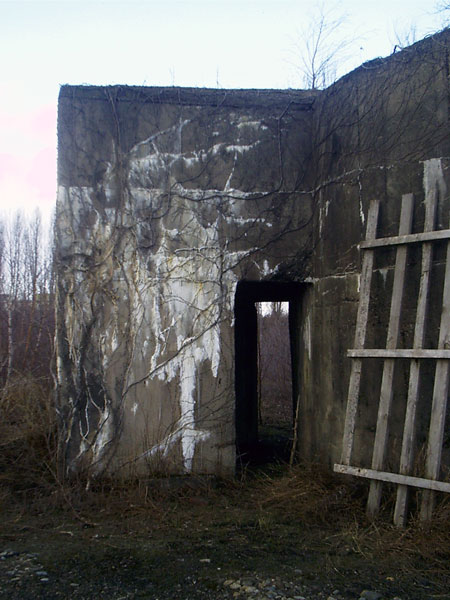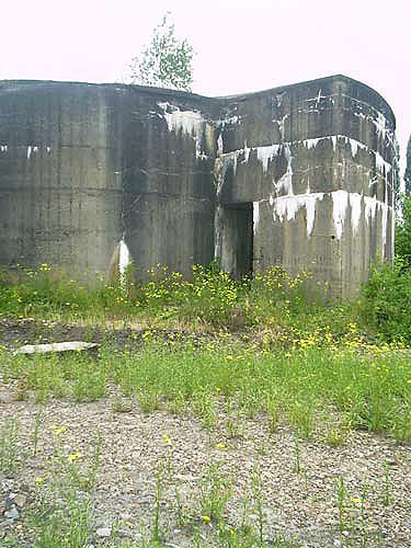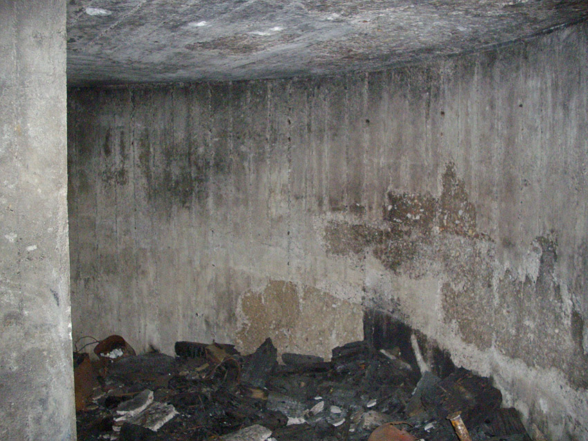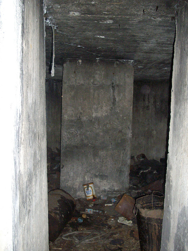 An dem Bunker befindet sich die Inschrift "Kohlenbunker", durch Verfall linksseitig nur schwer zu erkennen. Es könnte sich jedoch auch um eine Absplitterung des Betons durch einen nahen Bombeneinschlag handeln...