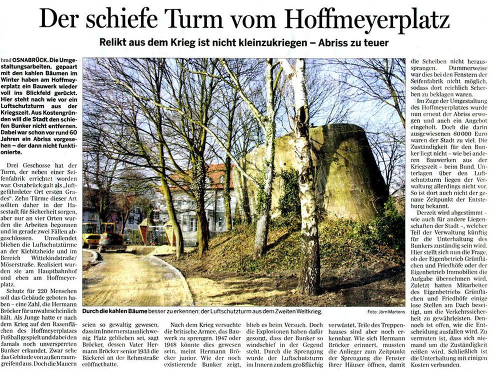 Ein umfangreicher Artikel über den Luftschutzturm in der Osnabrücker Tagespresse Anfang 2009: