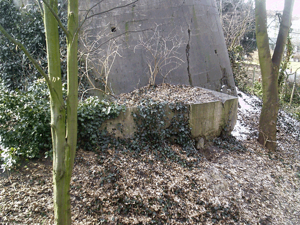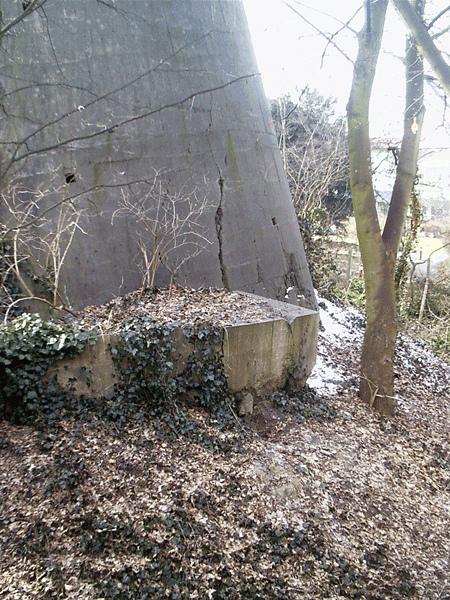Zum Vergleich eine ähnliche, nur größere Bunkerruine. Der gesprengte LS-Turm in Sande bei Wilhelmshaven: