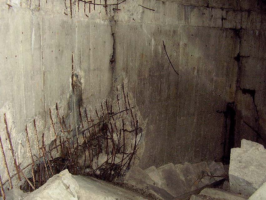 Aufnahmen des total zerstörten Treppenhauses: