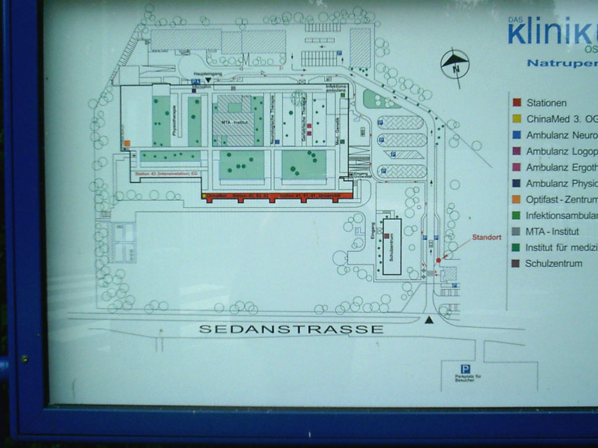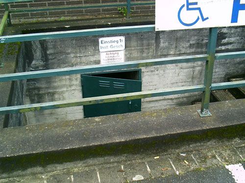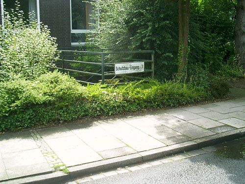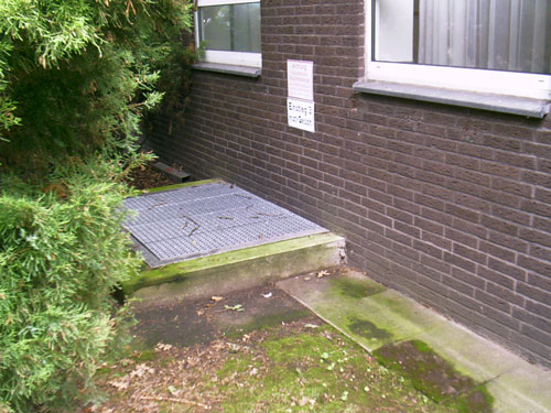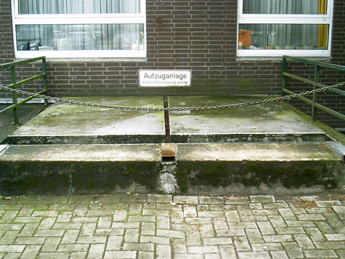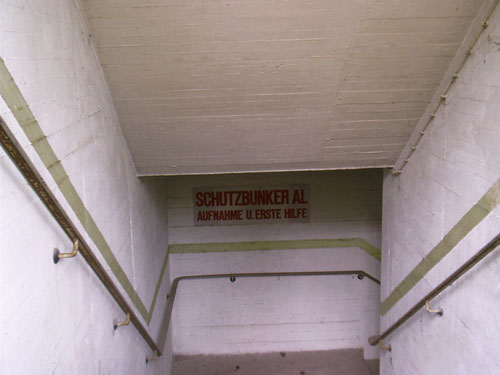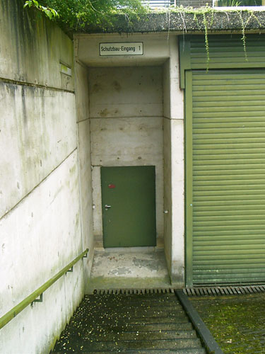 Auch der obige ist einer von mehreren neuen Eingängen in den ehemaligen, damals modernen "Atomschutzbunker" des (damaligen) Bundeswehrkrankenhauses in Osnabrück. Dieses Schutzgebäude wird heute von der Stadt und dem Klinikum Osnabrück als Archiv und Lagerräumlichkeit für soziale Organisationen genutzt. Die Bunkeranlage umfasst einen 1-geschossig errichteten Anlagenbereich, welcher sich unter dem gesamten darüber liegenden Gebäude ausdehnt. Die Anlage ist in Teilen noch funktionsfähig.