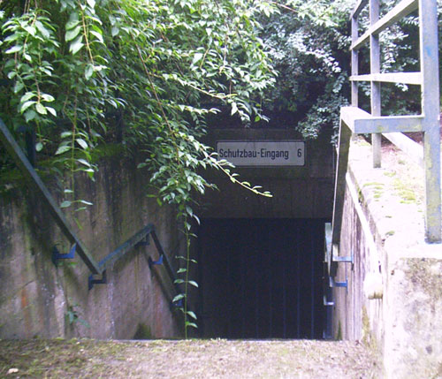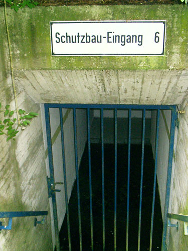Dies ist ein Originaleingangsbauwerk des ursprünglichen LS-Stollens. Viele der hier gezeigten weiteren Verbunkerungen wurden im Zusammenhang mit der Wiederherrichtung und groß angelegten Erweiterung während des "Kalten Krieges" errichtet.