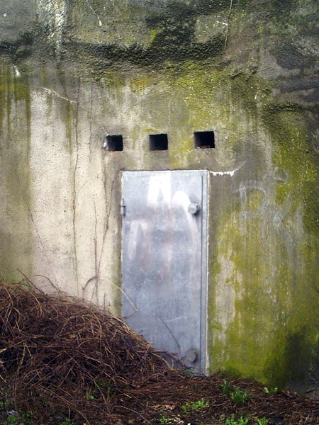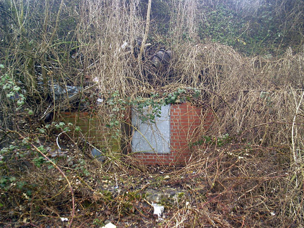 Einen zusätzlichen dritten Eingang (eventuell auch Notausstieg) könnte das folgende Objekt dargestellt haben. Die Luke selbst und die Klinkerung scheinen jedoch neueren Datums zu sein. Das Objekt befindet sich an den Bahnschienen in Nähe der anderen Eingänge: