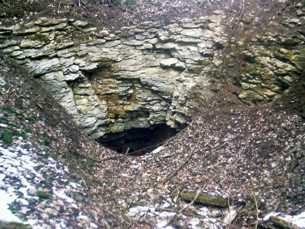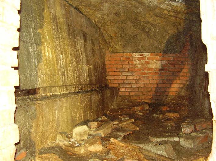 Hier war an der linken Seite eine Sitzbank aus Holz in den Beton eingelassen.
