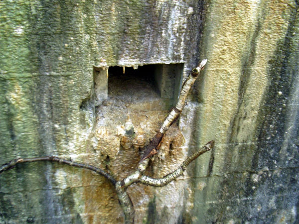 Ein Teil des Bunkers wurde offenbar nach dem Krieg abgetragen, sodass zwei der Kammern, darunter ein Sanitärbereich, heute nicht mehr vorhanden sind. Da dieser Bunker jedoch fernab größerer Siedlungen liegt, vermuten wir, dass in der Anlage auch Treibstoff aus dem benachbarten Depot zum Schutz vor Luftangriffen eingelagert wurde."