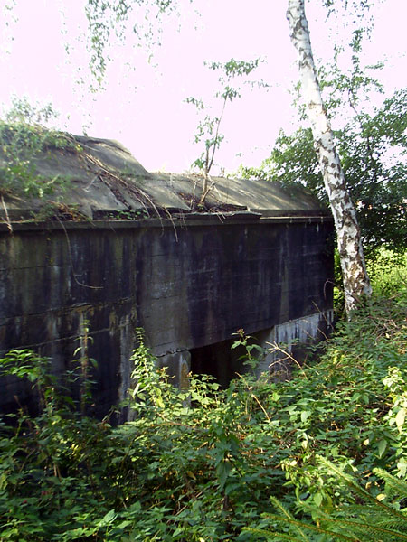 "Dieser eingeschossige, in massiver Stahlbetonbauweise errichtete Bunker befindet sich direkt am so genannten "Nassen Dreieck" nördlich von Ibbenbüren. Er ist ist im Großen noch heute gut erhalten und begehbar. Die Außenmaße betragen etwa sechs Meter Breite, 22 Meter Länge und ca. 4 Meter Höhe. Die Stärke der Betondecke beträgt 2 Meter, die Wandstärke ca. 1,50 Meter. Der Innenraum verfügte über zwei Sanitärräume mit Aborten, zwei weitere Kammern waren ausschließlich für die Belüftungstechnik (Handkurbeln) eingerichtet worden.