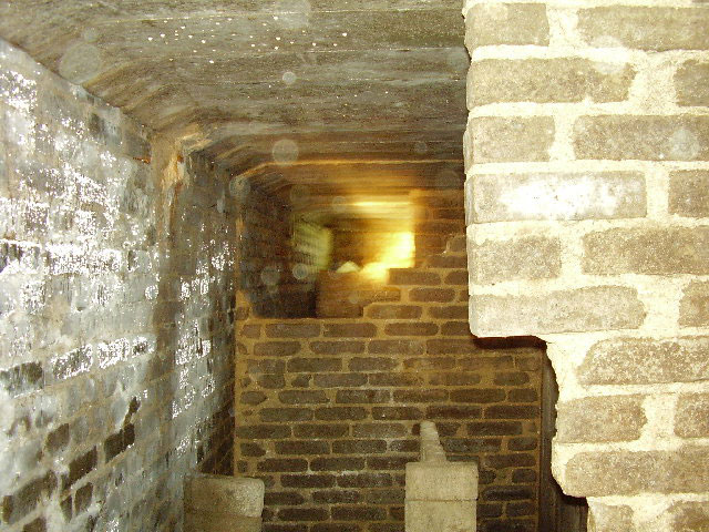 Diese Trennwände und offenbar ehemals vier Zugänge, bauartähnlich dem benachbarten Deckungsgraben, sind uns sofort aufgefallen. Das Bauwerk könnte aufgrund seiner Lage und Abschlussdecke durchaus als (nachträglich) bombensicher gegolten haben. Das Bauwerk zeigt die gleiche Erscheinung auf, besteht aus gleichem Material, ist aber länger. Die Länge beträgt hier circa 20 Meter.