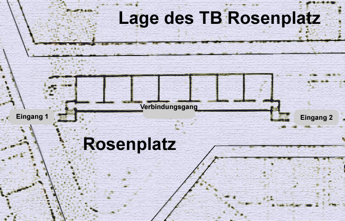 Ungefähre Risse mit Lage des Bunkers unter dem Rosenplatz:
