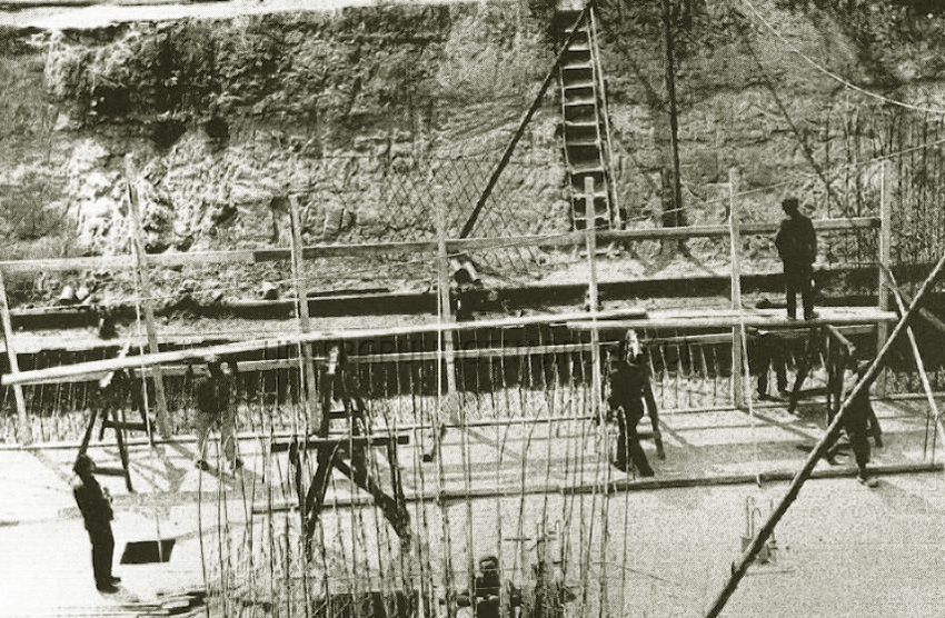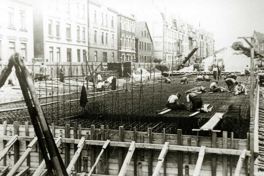Zwei Aufnahmen aus der Bauphase des Tiefbunkers unter dem Rosenplatz.