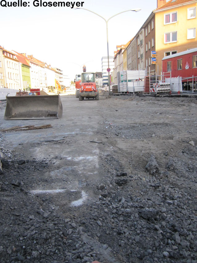 Weitere Aufnahmen der Baumaßnahmen am Rosenplatz. Einer der Eingänge wurde im Frühjahr 2011 freigelegt, sowie ein Versorgungsschacht. Der ersichtliche Eingang, es handelt sich dabei um den Osteinstieg in den Bunker, ist nach dem Krieg lediglich teilweise zugeschüttet worden. Das Innere des Bunkers war durch eine Verschüttung des Hauptganges nicht gänzlich ersichtlich, lediglich einige Meter waren einsehbar. Der ersichtliche Gangbereich stand unter Wasser. Es ist daher noch immer nicht geklärt, ob der Hauptteil des Bunkers in der frühen Nachkriegszeit verfüllt (dann durch Einbringung von Trümmerschutt) worden ist, oder nicht. Die Verschüttung des Ganges spricht jedoch dafür. Nach der Freilegung des Ostzuganges und einer Begutachtung durch die Stadt Osnabrück wurde dieser dann kurze Zeit später wohl für "immer" mit Beton versiegelt / verfüllt.