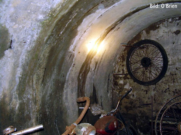 Oben der Riss des Bunkers