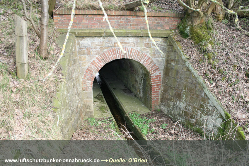 Dies ist ein ehemaliger Entwässerungstunnel unter den Gleisen im Bereich "Im Gattberg" in Belm, im Krieg wohl nicht mit Splitterschutzprellwänden, sondern nur mit Holzwänden als absoluter Behelfsschutz versehen.