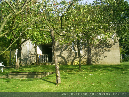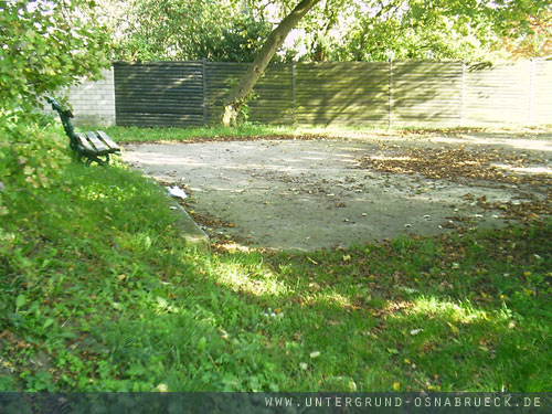 Unter dieser Betonplatte befand sich ursprünglich die Rampe eines zweiten Einganges: