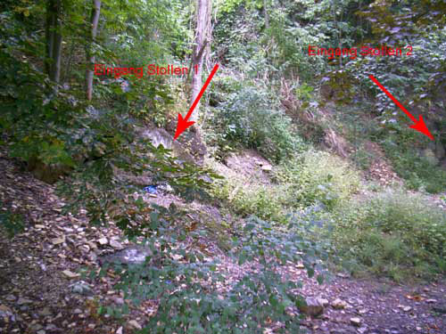 Links Behelfsstollen Westerberg 1, rechts Stollen 2...
