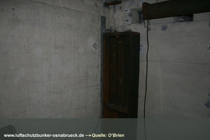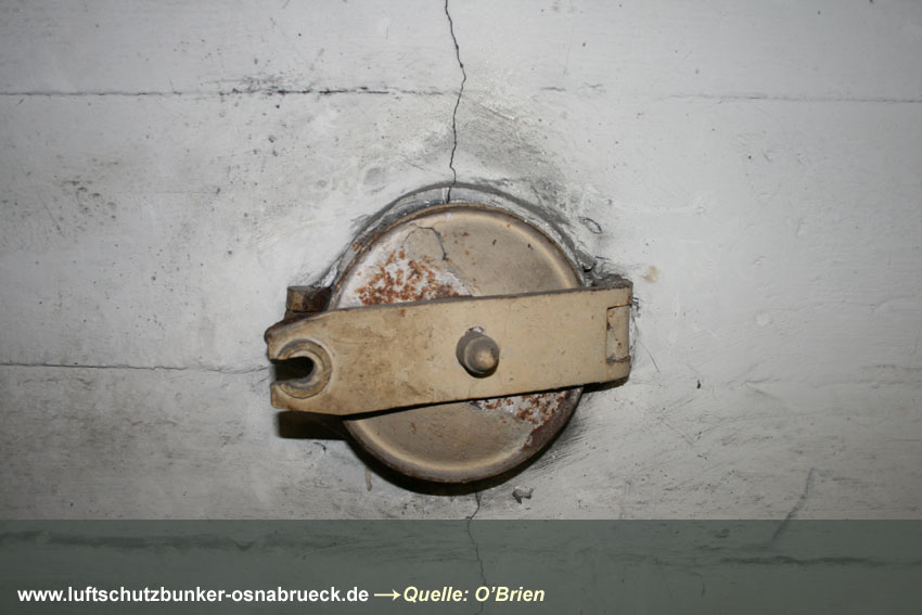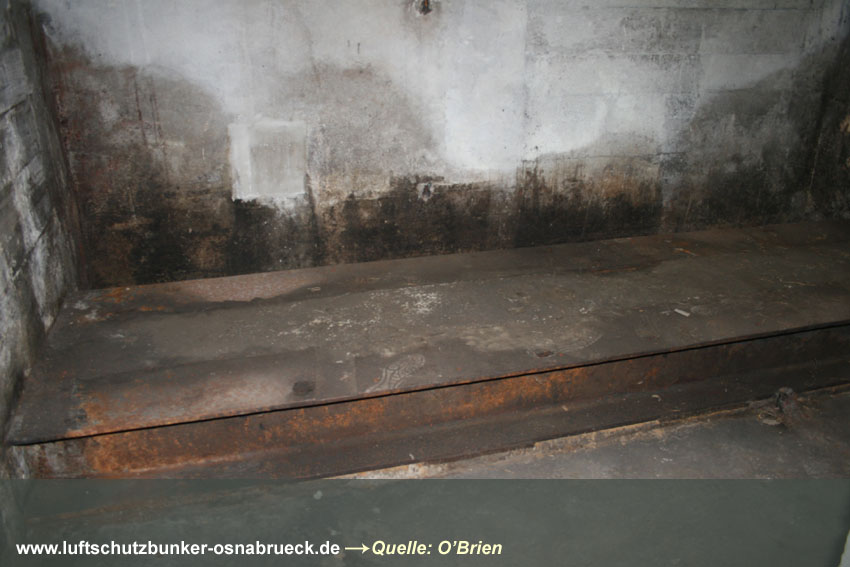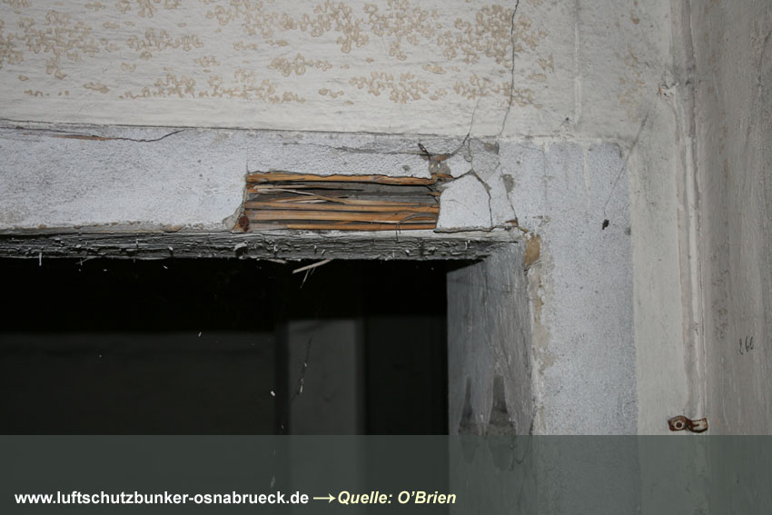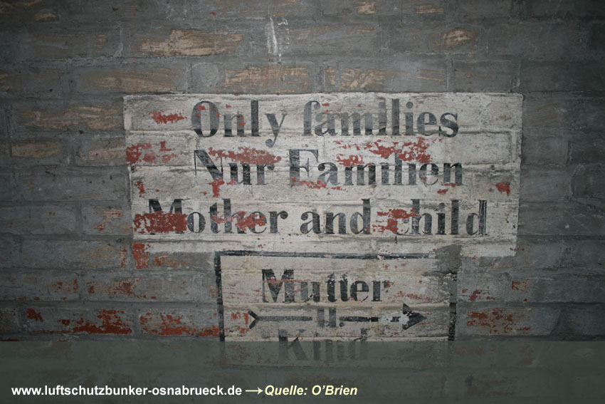 Ein Schriftzug in englisch und deutsch. Trotz Kriegszustand zwischen England und Deutschland wurde in diesem Bunker zweisprachig zu den Mutter- und Kindschutzräumen hingewiesen. Da dies ein Reichsbahnbunker war, sind die Hinweise international lesbar gehalten gewesen: