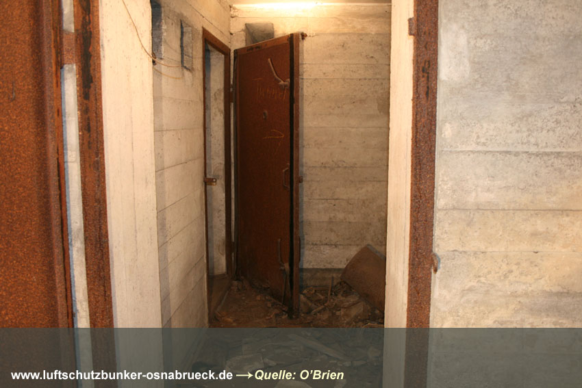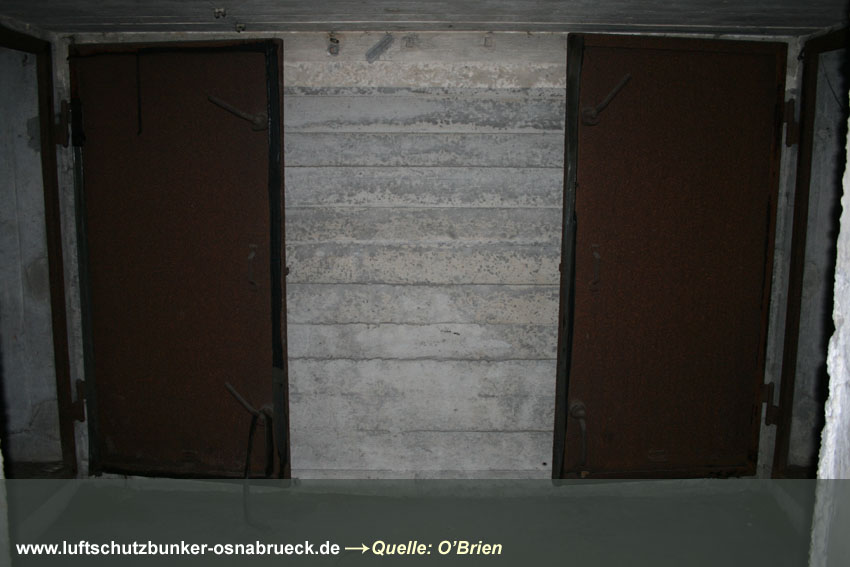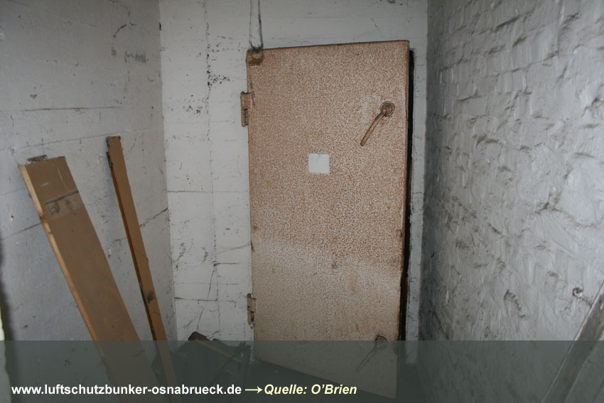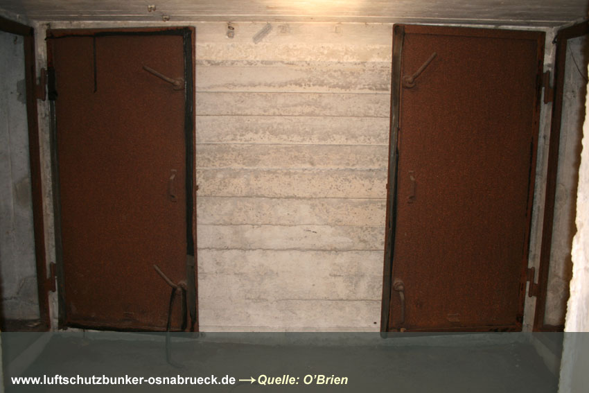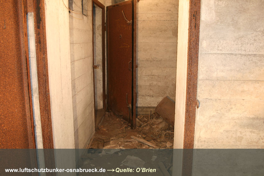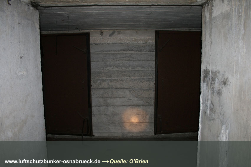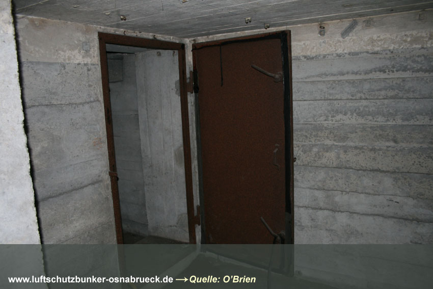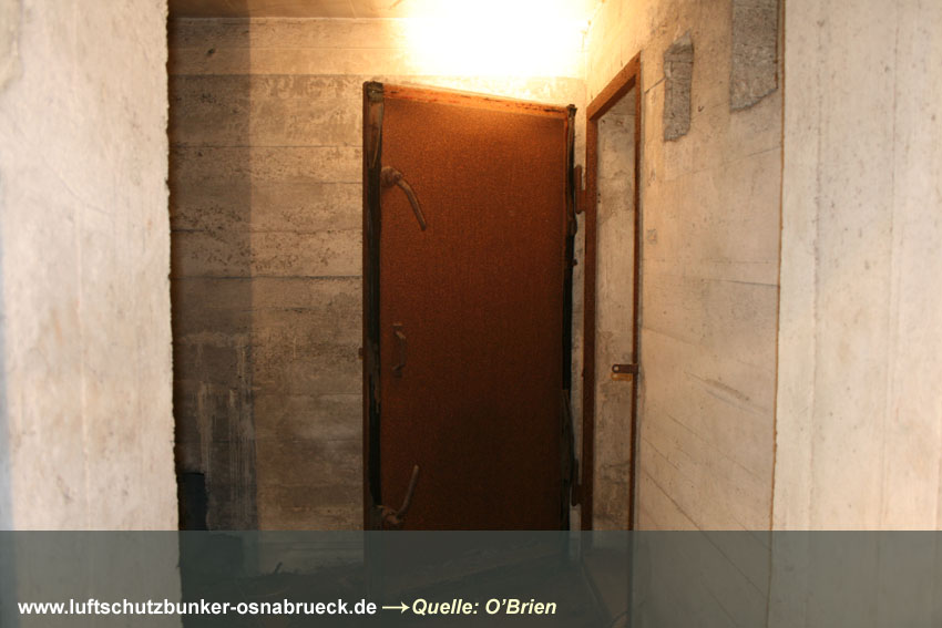 Es geht hinein durch die Schleuse im dritten Stockwerk des Bunkers. Hier an der Oberkante des Hanges, in den der Bunker eingebaut wurde, ist er ebenerdig im dritten Geschoss zu betreten: