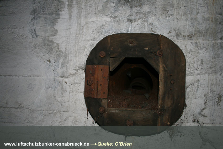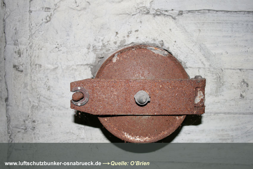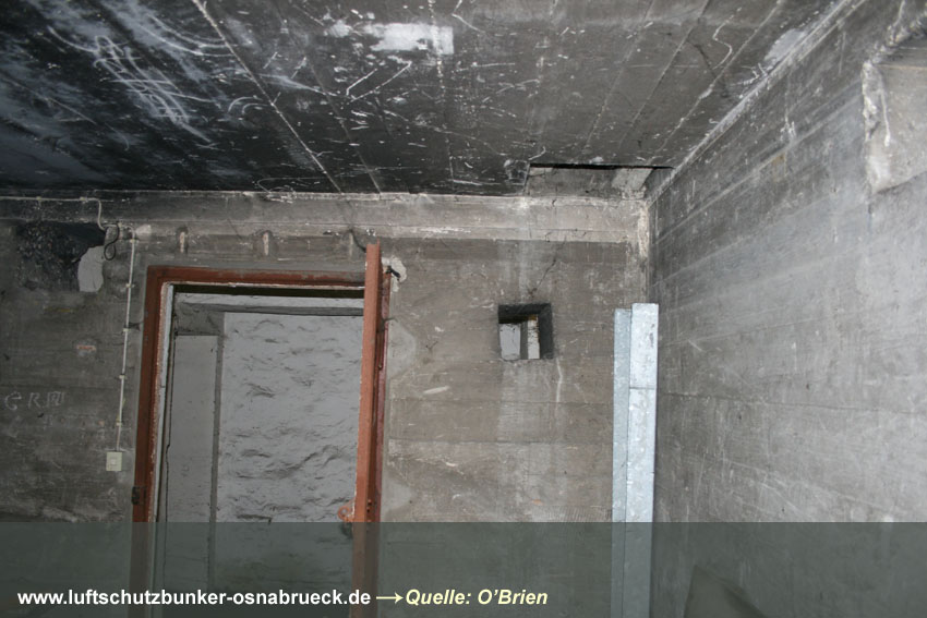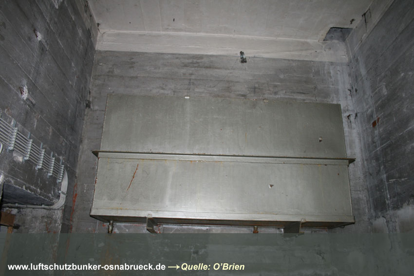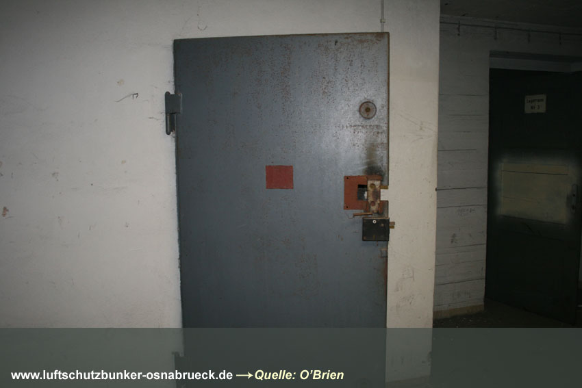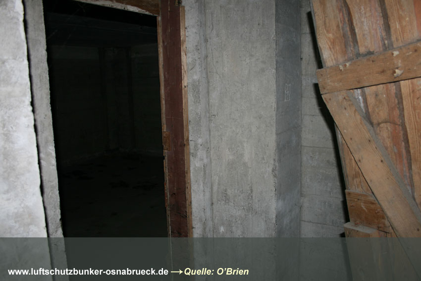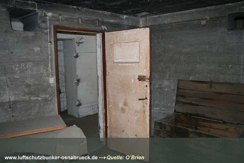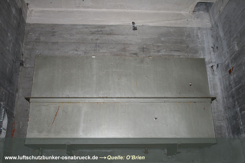 Es geht hinein durch die Schleuse im dritten Stockwerk des Bunkers. Hier an der Oberkante des Hanges, in den der Bunker eingebaut wurde, ist er ebenerdig im dritten Geschoss zu betreten: