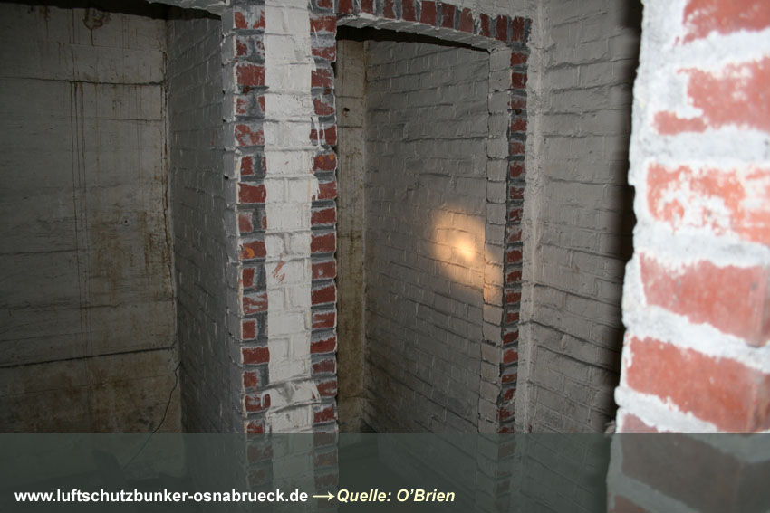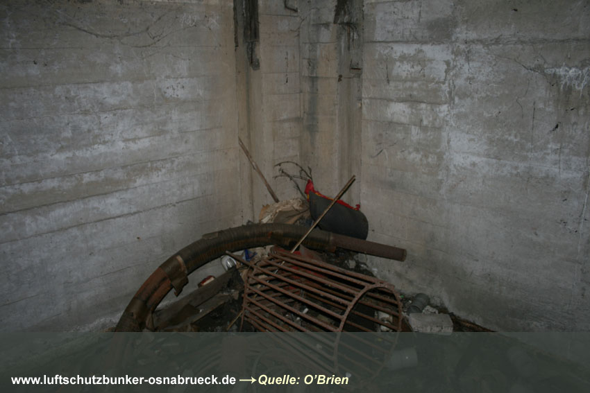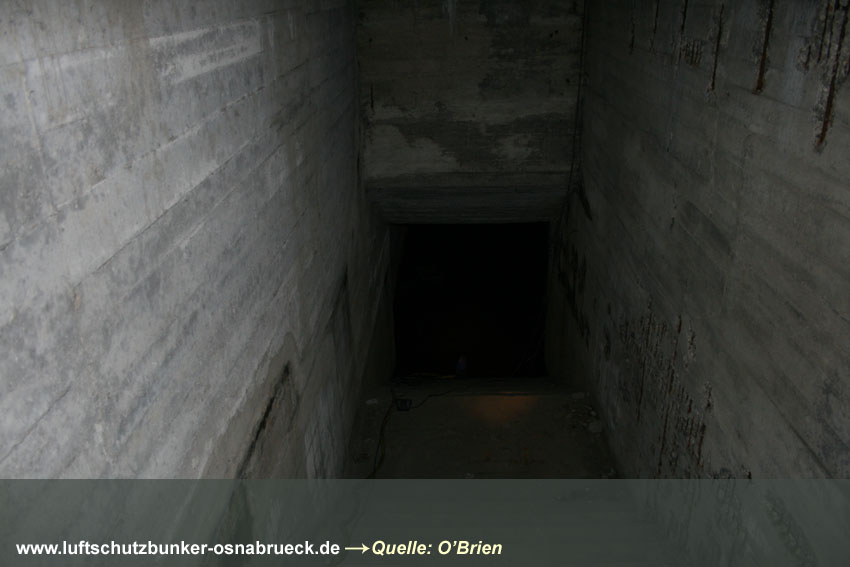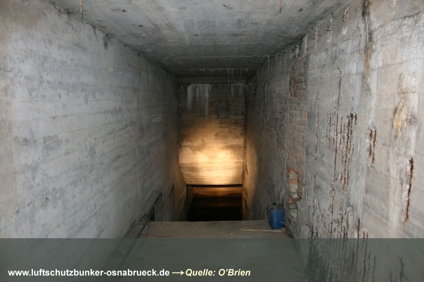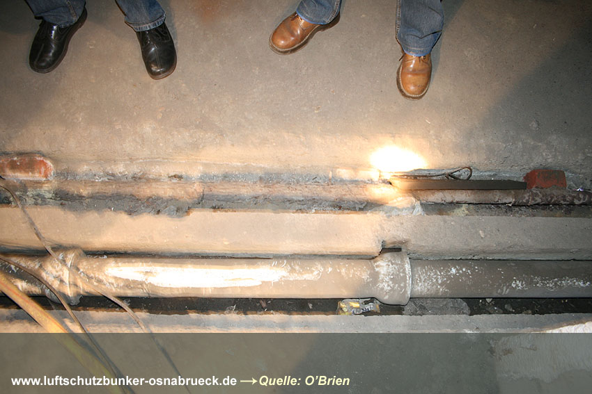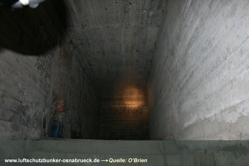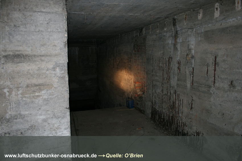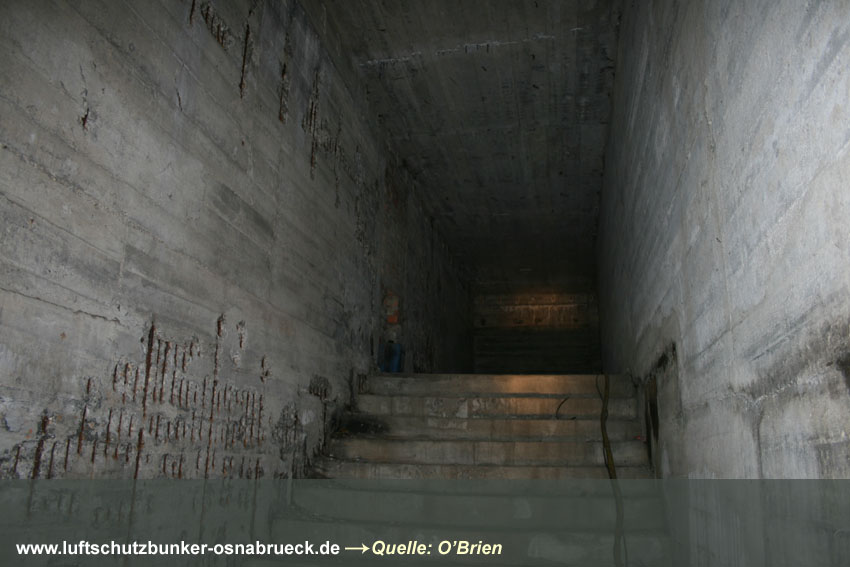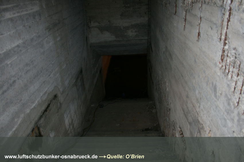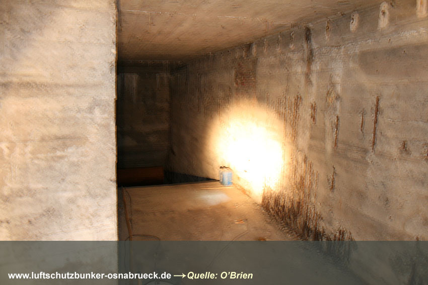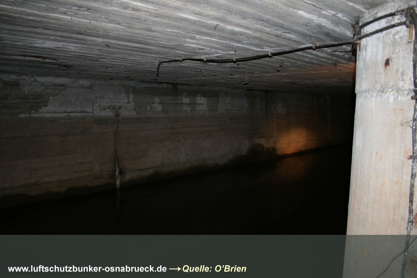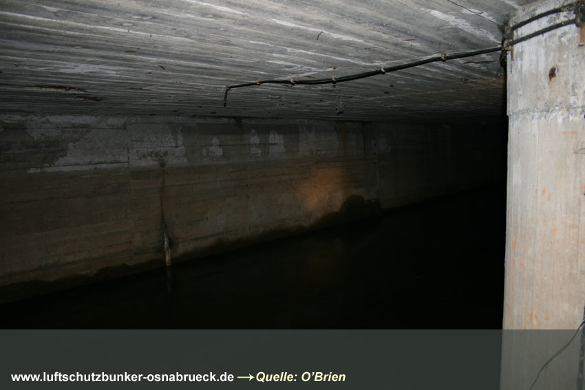 Hinab in den den Keller des Bunkers. Dieser erstreckt sich unter dem Hauptbunkerkörper und als externer Tunnel fort bis zum heutigen Gleis 14 und steht unter Wasser: