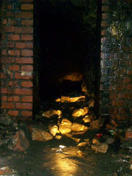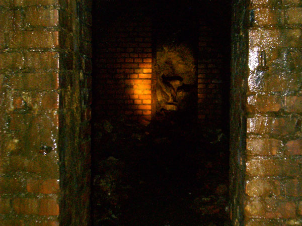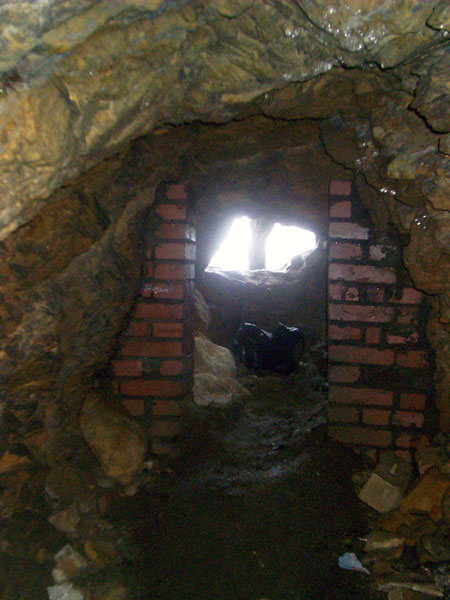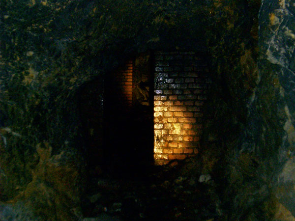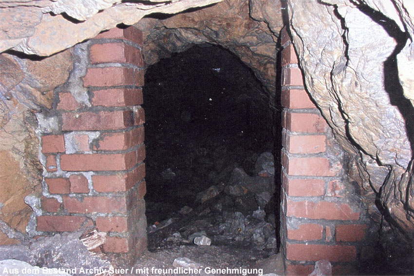 Hinter dem beleuchteten Vorsprung geht der Stollen links ab